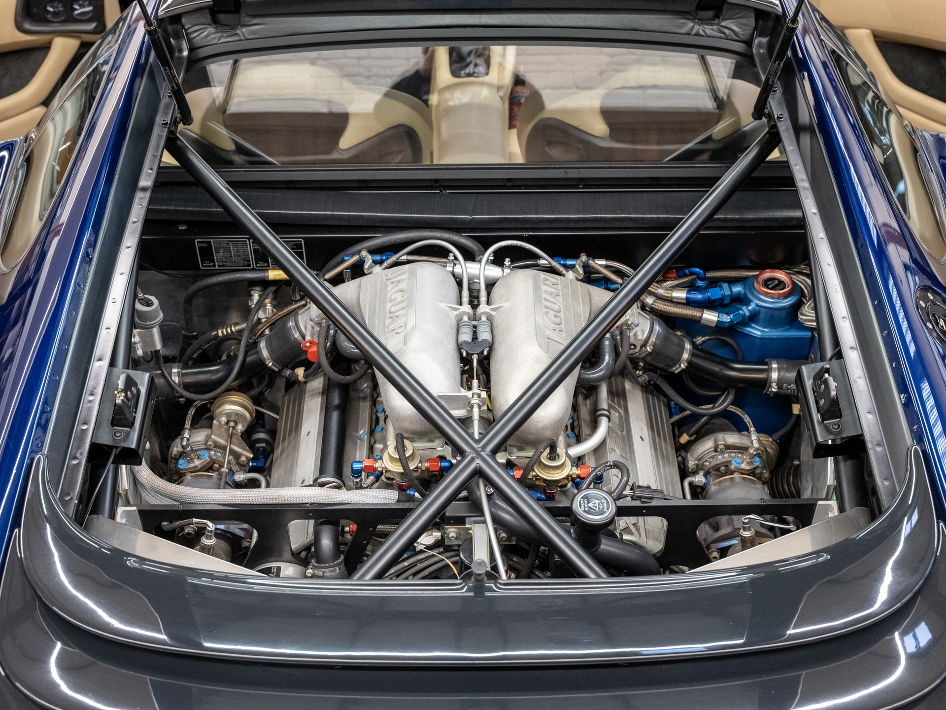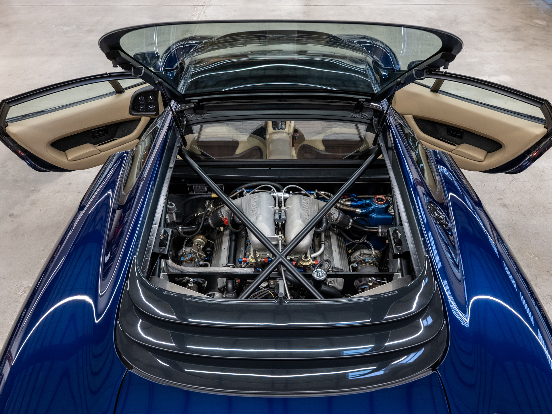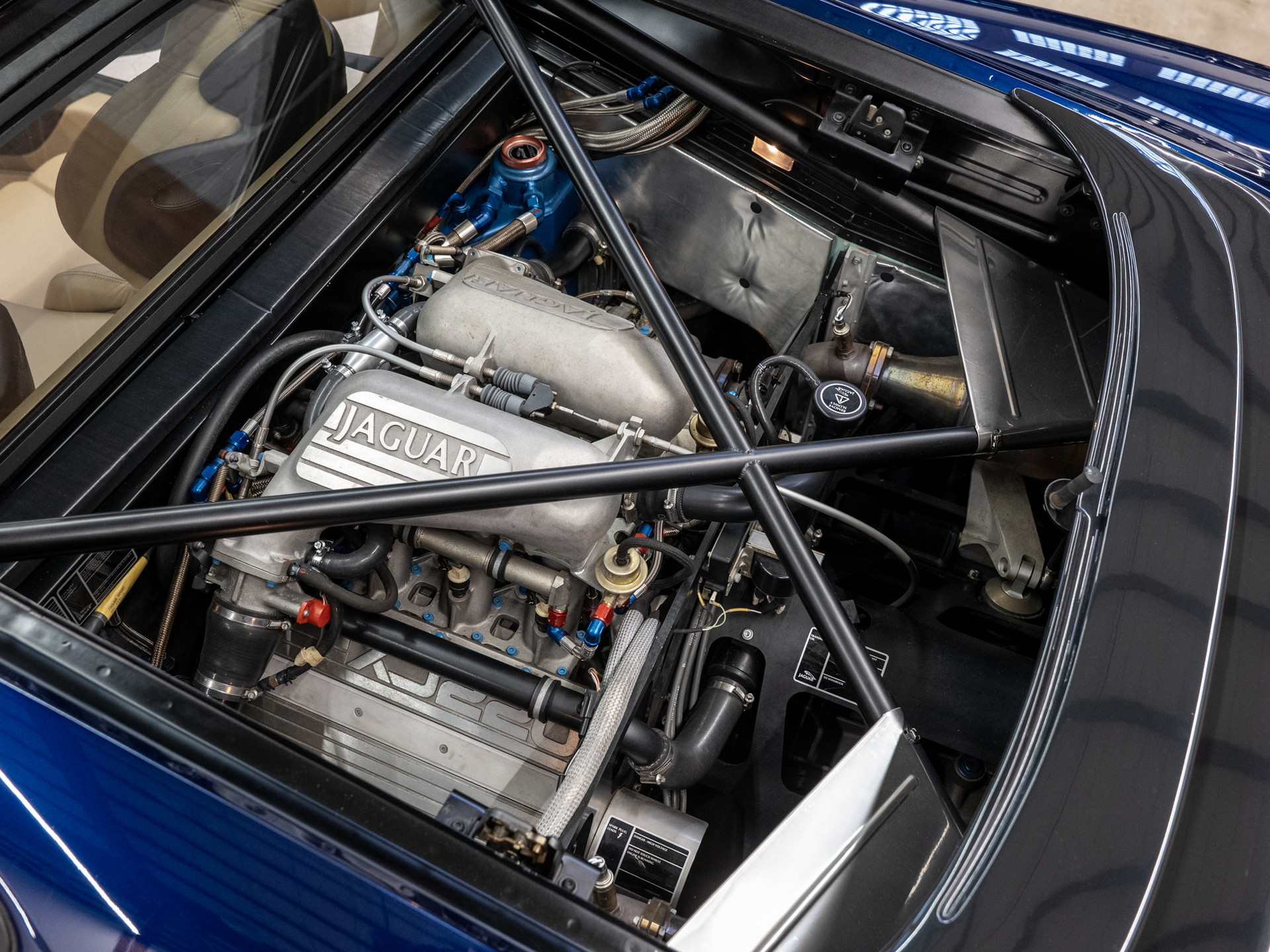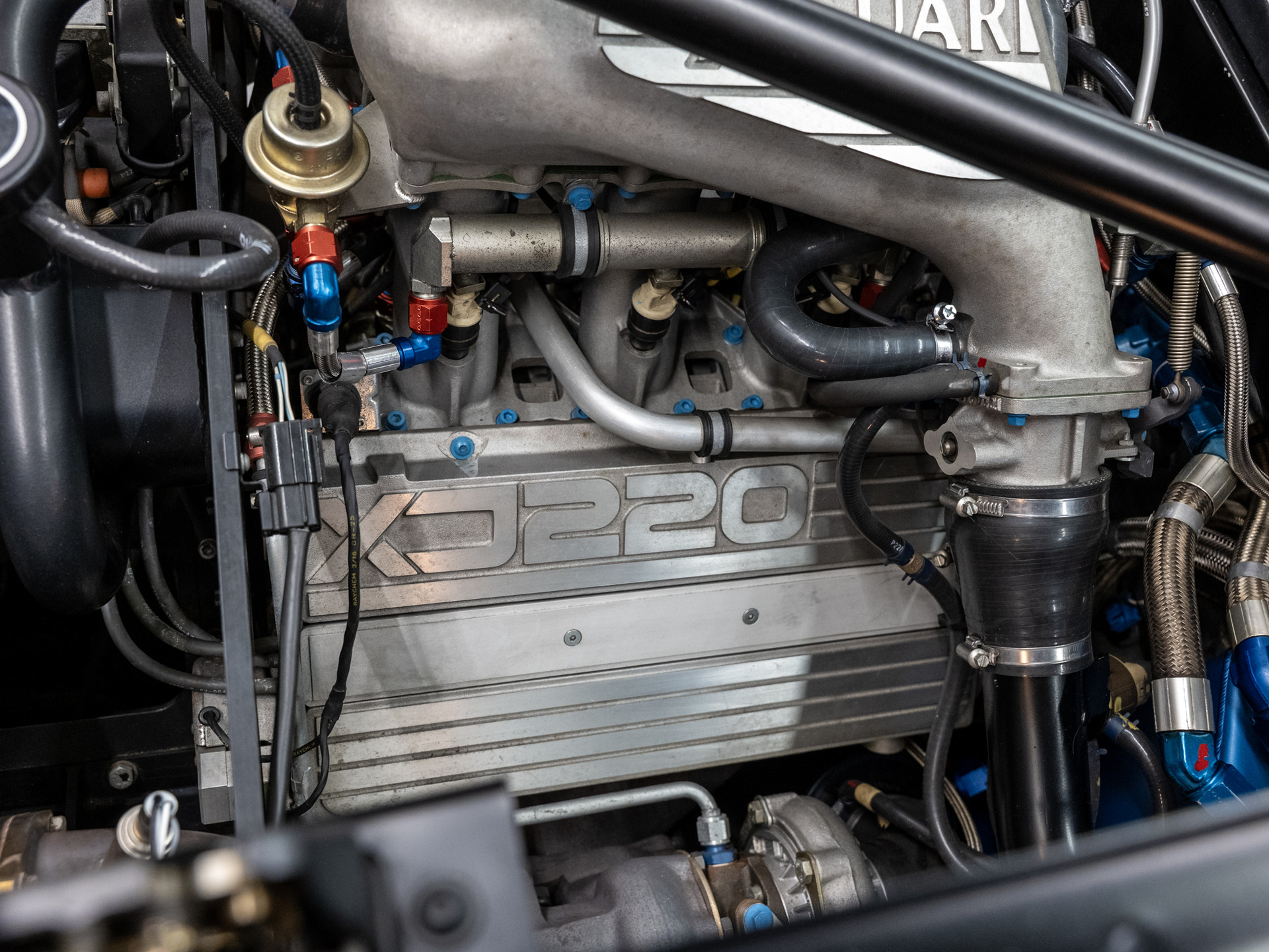 Der JAGUAR SPORT Chef Tom Walkinshaw, bekannt auch durch seine internationalen Siege mit dem Renntourenwagen JAGUAR XJS und den SILK CUT Gruppe C Renn-Prototypen XJR 9 bis XJR 14 die Le Mans, Daytona und andere internationale Rennen und Meisterschaften gewonnen haben. Der bärenstarke Motor des XJ 220 stammt ursprünglich aus dem Gruppe C Renn-Prototyp XJR 10 und XJR 11, hier gezähmt für öffentliche Straßen.