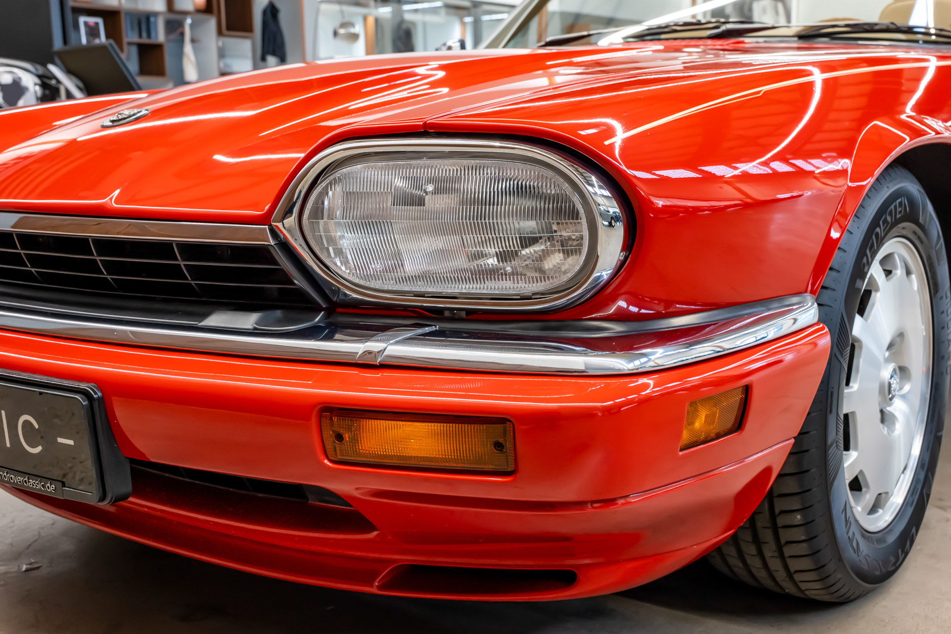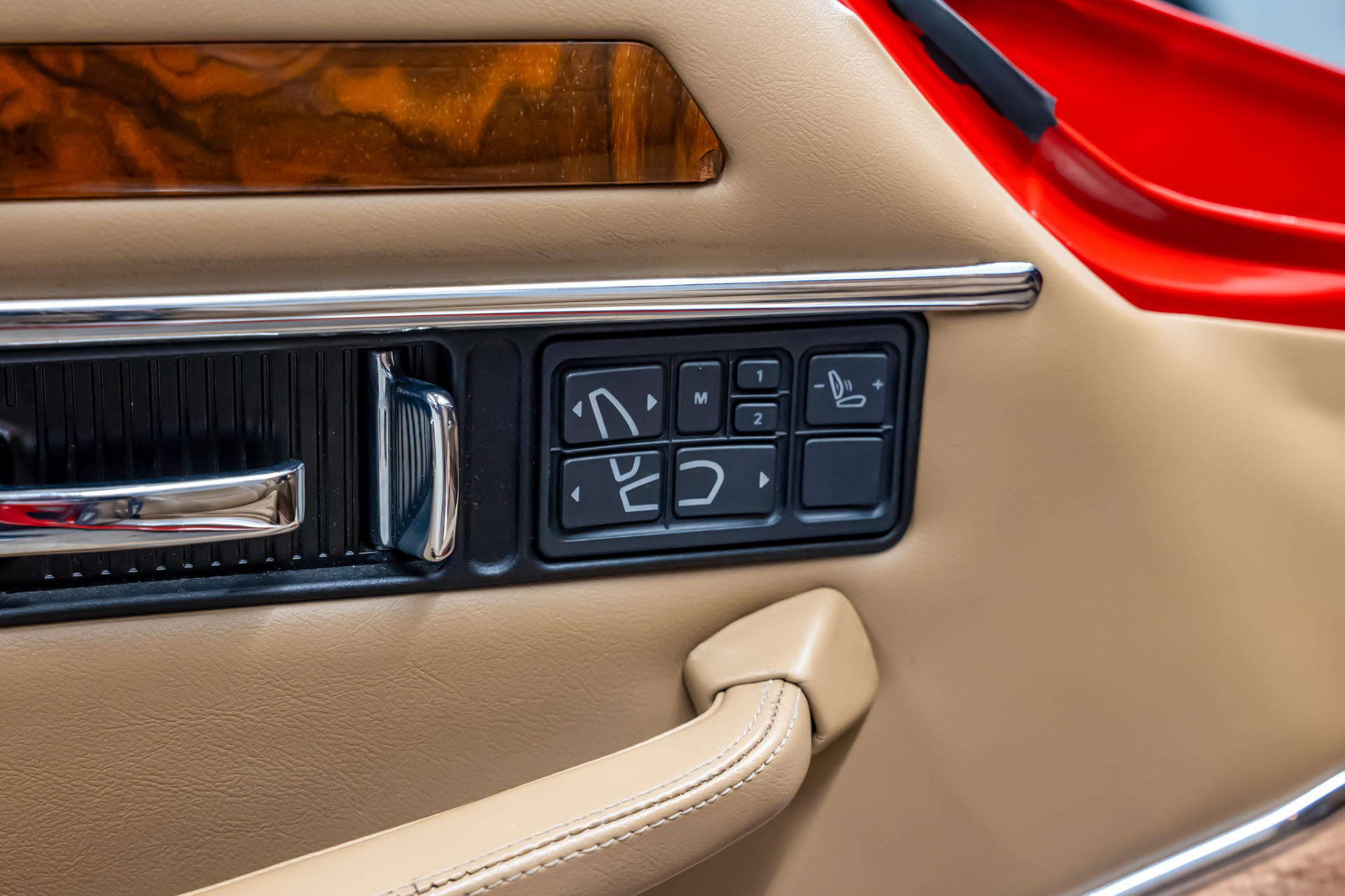 Dieses Exemplar präsentiert sich in der attraktiven Farbkombination Signal Red mit Interieur in Coffee – sportlich und zugleich elegant.